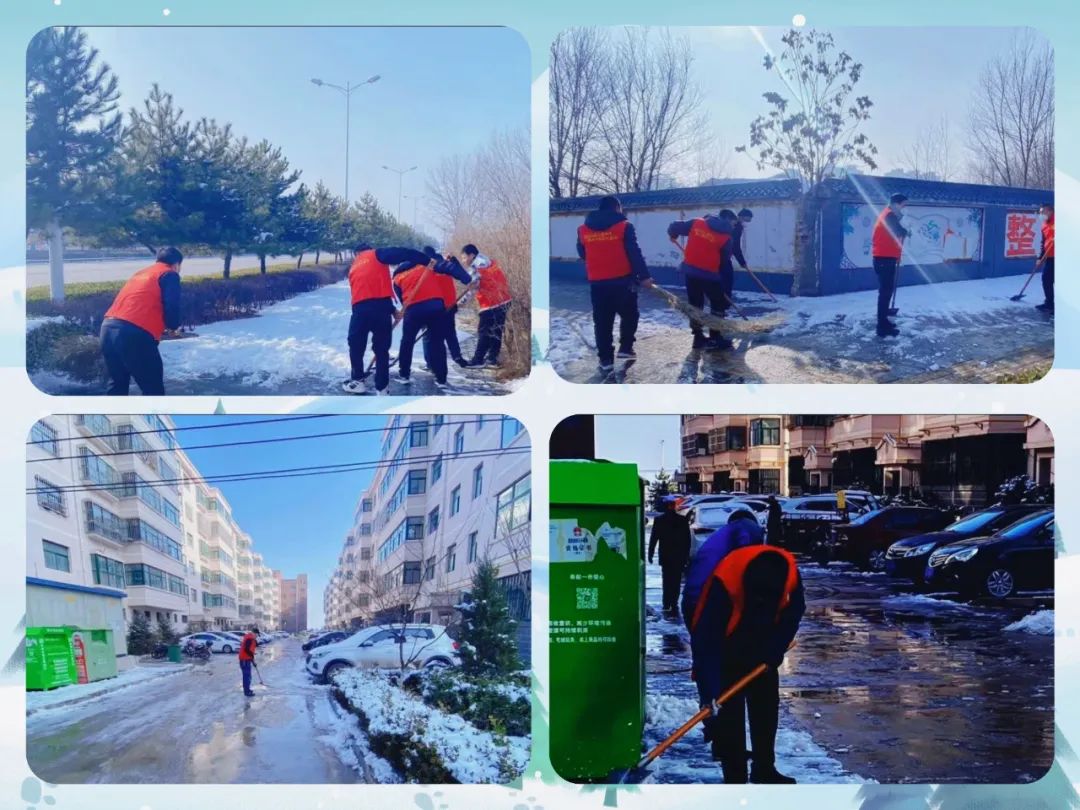 在物業(yè)小區(qū)、場內道路、道路交通、創(chuàng)城包抓共建區(qū)等地方,隨處可見一隊隊志愿者在清掃積雪。大家分工明確、默契配合,一次次掄起掃帚、鐵锨、鐵鏟,與地面的摩擦聲此起彼伏,奏響一首掃雪除冰進行曲,一個個普通的身影在冰雪中顯得格外溫暖,形成了一道靚麗的文明風景線。