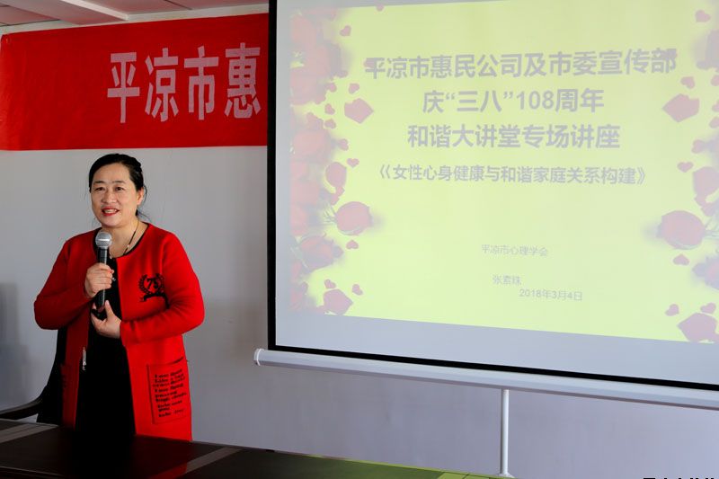 講座由平?jīng)鍪行睦韺W(xué)會(huì)會(huì)長(zhǎng)、國(guó)家執(zhí)業(yè)醫(yī)師、國(guó)家二級(jí)心理咨詢師、EAP高級(jí)講師張素珠老師主講,張老師以“婦女心身健康與家庭及社會(huì)和諧”為主題,作了深入淺出,激情洋溢的講座,講座結(jié)合專業(yè)的學(xué)識(shí)和通俗的語(yǔ)言,系統(tǒng)講解了女性自出生到婚育各個(gè)成長(zhǎng)階段的心理健康養(yǎng)護(hù)和相關(guān)心理問(wèn)題矯正知識(shí),深入分析了女性心理發(fā)展與家庭、社會(huì)的關(guān)系,結(jié)合現(xiàn)實(shí)案例解答了普通家庭生活中常見(jiàn)的心理和家庭關(guān)系問(wèn)題。