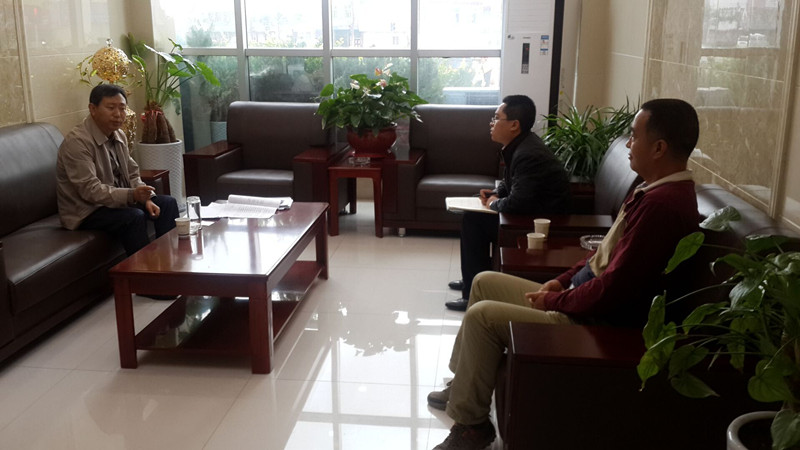 圖為公司副總經理柳振源與試用期滿工作人員進行考核談話