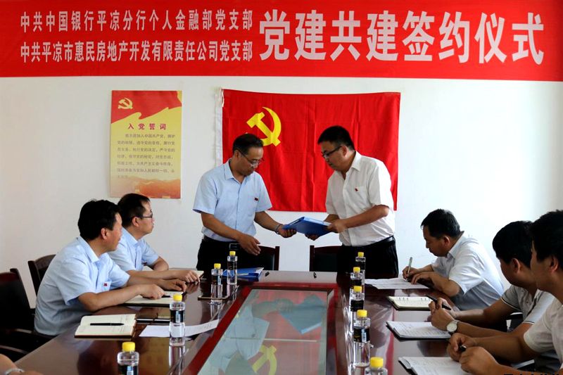 近日,中共平?jīng)鍪谢菝穹康禺a(chǎn)開(kāi)發(fā)有限責(zé)任公司黨支部與中共中國(guó)銀行平?jīng)龇中袀€(gè)人金融部黨支部黨建共建簽約儀式在中國(guó)銀行平?jīng)龇中信e行?;菝裢顿Y公司副總經(jīng)理柳振源、中國(guó)銀行平?jīng)龇中屑o(jì)檢書(shū)記秦建鋼、副行長(zhǎng)楊震榮出席簽約儀式。