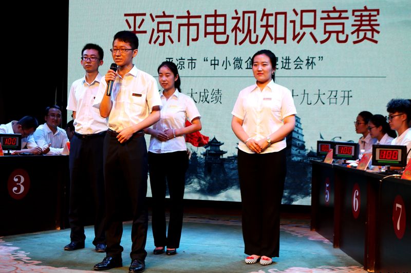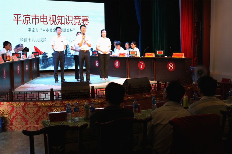 7月26日上午,參加全市“中小企業(yè)促進(jìn)會杯”暢談十八大成績·喜迎十九大召開電視知識競賽復(fù)賽階段比賽的32支隊伍,為取得決賽的入場券在崆峒區(qū)“崆峒笑談”傳承演藝中心展開激烈角逐,我公司參賽隊代表中省駐平及市屬企業(yè)賽區(qū)參加競賽。