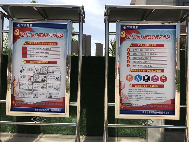 御景華府、平?jīng)鲆恢行滦^(qū)、惠民大廈三個工地現(xiàn)場采取宣傳欄、電子顯示屏、懸掛條幅、公布舉報電話及各種會議,大力宣傳打贏“掃黑除惡”專項斗爭的重大意義。讓參建各方深入了解建筑工地常見的屬于重點打擊范圍的黑惡勢力的情形,深刻認(rèn)識到黑惡勢力對社會和諧穩(wěn)定的危害,并做到不參與黑惡勢力,不做涉黑涉惡的行為。