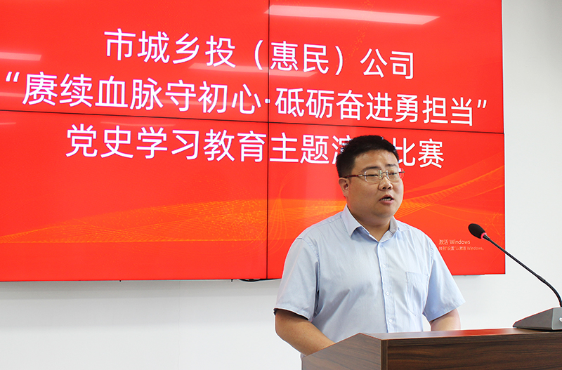 為慶祝中國共產(chǎn)黨成立100周年,持續(xù)推動黨史學(xué)習(xí)教育走深走實(shí),5月27日,市城鄉(xiāng)投(惠民)公司舉辦“庚序血脈守初心,砥礪奮進(jìn)勇?lián)?dāng)”黨史學(xué)習(xí)教育主題演講比賽。平?jīng)龀青l(xiāng)投(惠民)公司黨委委員、副總經(jīng)理魏顯文在演講比賽前作了動員講話。