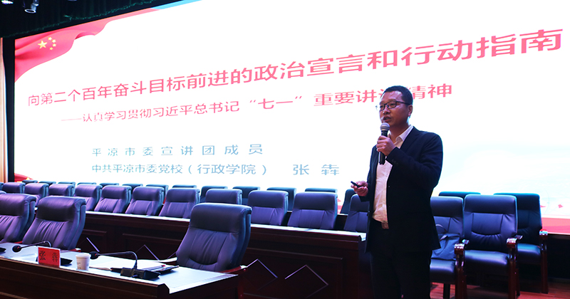 下午,邀請市委黨校(行政學院)辦公室副主任、黨史黨建專業(yè)副教授張犇作了題為《向第二個百年奮斗目標前進的政治宣言和行動指南》的宣講輔導。張犇從充分認識“七一”重要講話的重大意義、準確把握“七一”重要講話的豐富內(nèi)涵、全力推動“七一”重要講話精神落地生根三個方面,對習近平總書記“七一”重要講話精神進行了詳細解讀。
