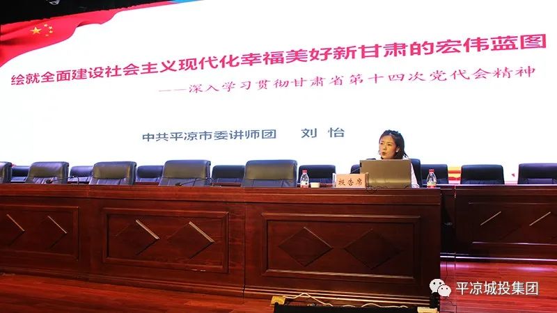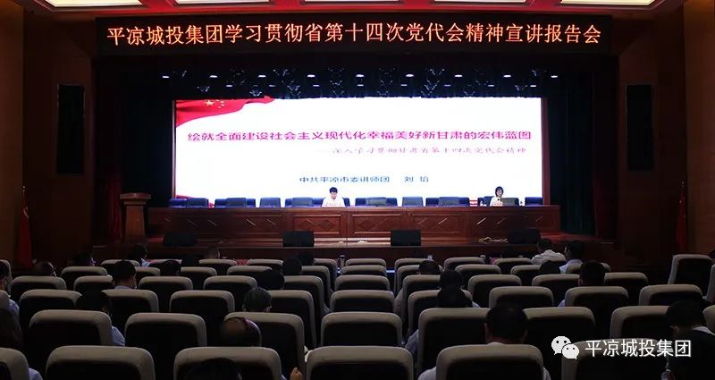 為進一步深入學習貫徹省第十四次黨代會精神,按照市委及市政府國資委黨委的統(tǒng)一安排,7月14日,平?jīng)龀峭都瘓F舉辦學習貫徹省第十四次黨代會精神宣講報告會,邀請市委講師團辦公室主任、全省中青年理論宣講骨干劉怡同志作專題宣講報告。公司黨委委員、副總經(jīng)理魏顯文主持會議。在家的領導班子成員,中層干部及全體黨員,共計120余人參加會議。