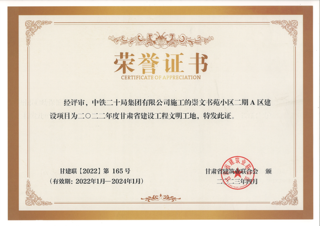 近期,集團公司下屬房產(chǎn)公司開發(fā)建設(shè)的崇文書苑二期建設(shè)項目榮獲2022年度省級文明工地榮譽稱號。