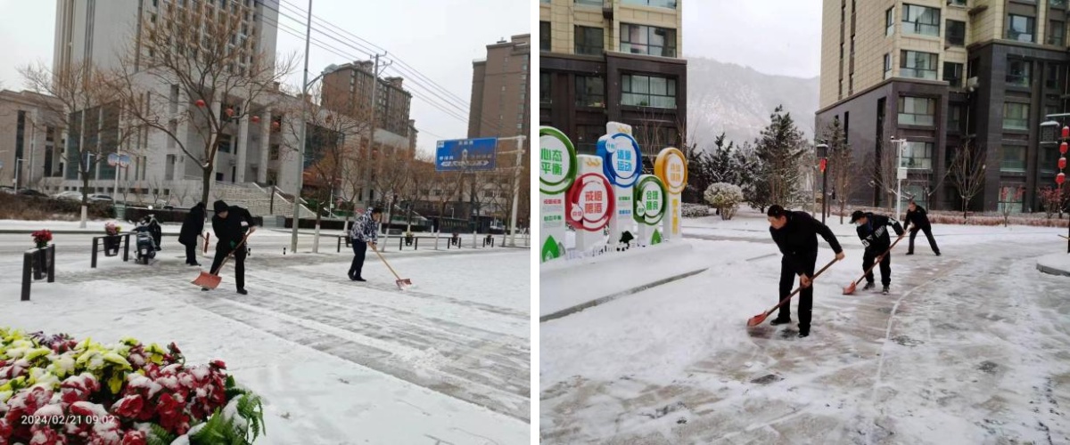 文化傳媒公司全體員工快速開展鏟雪除冰工作,將劇院外圍平臺(tái)、人行步道、車輛出入口、廣場等處的積雪進(jìn)行了清掃。全體員工不畏嚴(yán)寒、干勁十足,用最短的時(shí)間為市民清理出了“安全通道”。