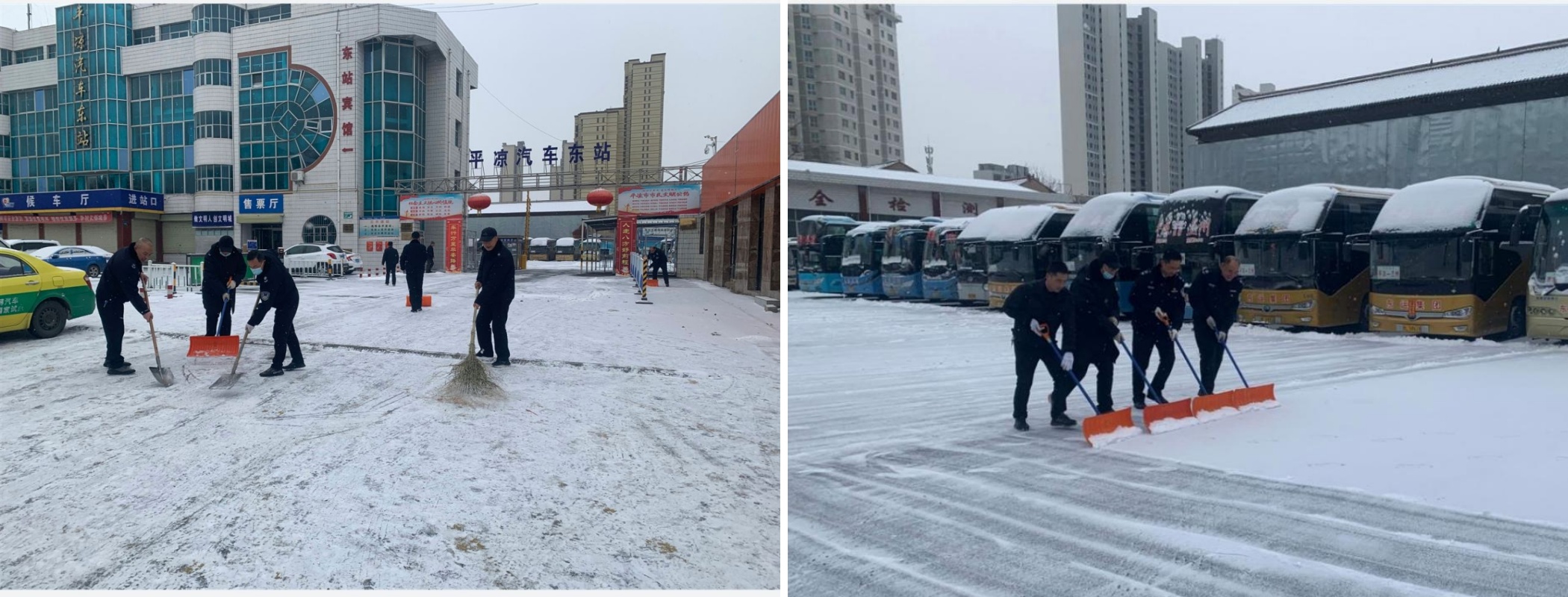眾安公司第一時(shí)間啟動(dòng)應(yīng)急預(yù)防措施,封閉站內(nèi)所有車輛并及時(shí)通過多種方式向滯留旅客隨時(shí)通報(bào)信息。全體干部職工快速反應(yīng),分工合作,及時(shí)清理站前廣場及院內(nèi)停車場積雪,掃出一條安全出行的“綠色通道”,為廣大市民平安出行保駕護(hù)航。在車輛停發(fā)期間,設(shè)立愛心崗和服務(wù)崗為旅客提供后勤服務(wù)保障,安撫旅客情緒,做好滯留旅客的解釋工作。同時(shí),眾安公司還與各參營公司溝通關(guān)注路況信息,爭取車輛早日恢復(fù)通行。