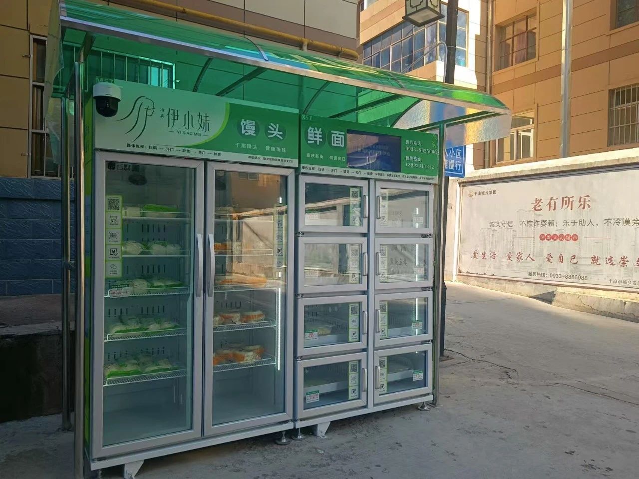自動面食制品售賣機僅需微信掃碼開門、自由選購、關門自動結算三步即可完成整個購物流程,同時具備保鮮、冷藏等功能,可以時刻保持食品的新鮮度,讓居民隨時都有“新鮮”體驗。