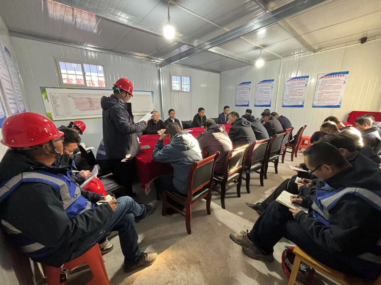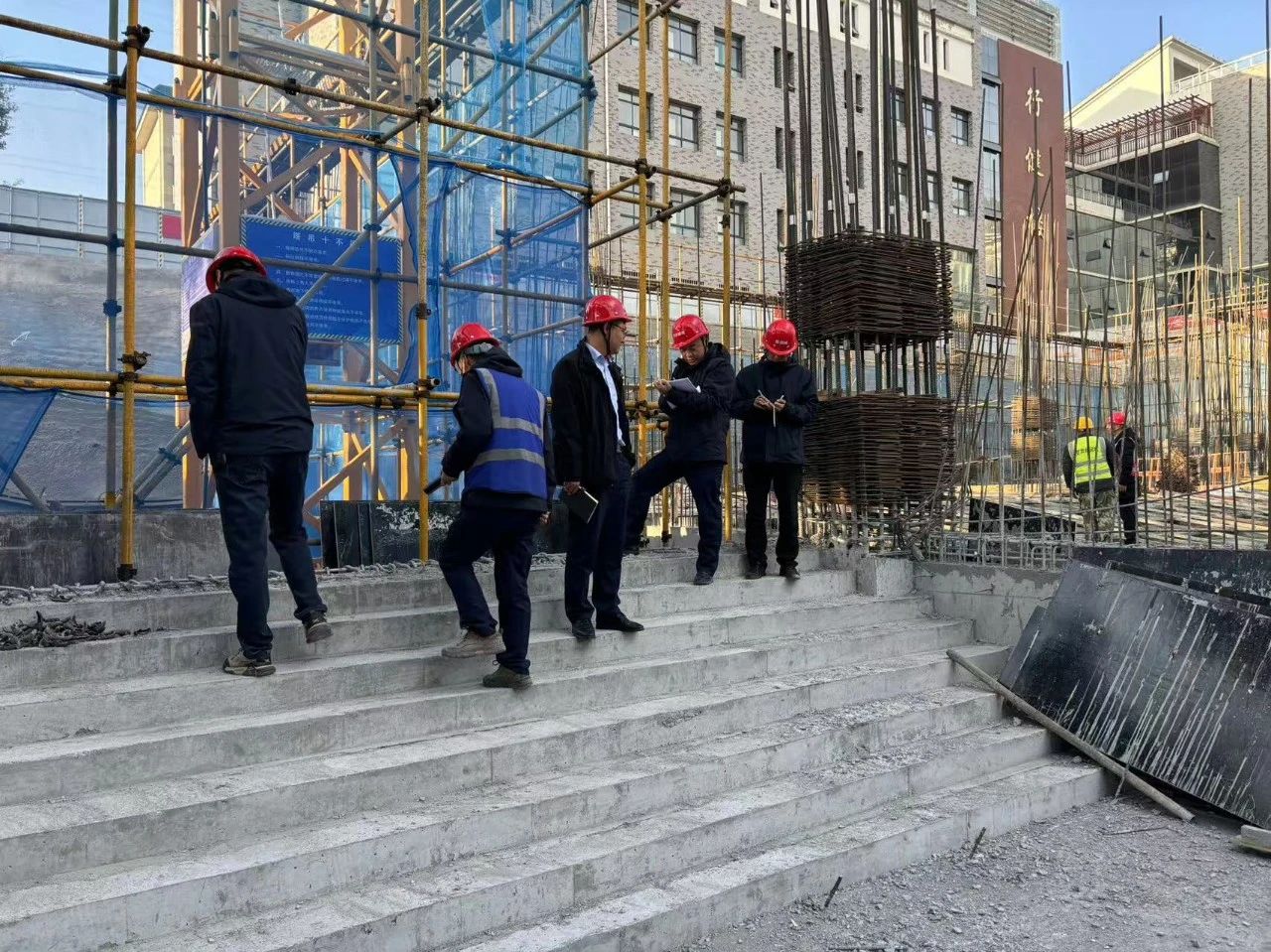 11月10日,集團(tuán)公司在平?jīng)鏊闹惺┕ろ?xiàng)目部組織召開(kāi)工程質(zhì)量自查提升現(xiàn)場(chǎng)會(huì)。會(huì)議以平?jīng)鏊闹卸喙δ芙淌沂┕がF(xiàn)場(chǎng)為例,圍繞規(guī)范施工、腳手架搭設(shè)、臨邊防護(hù)、模板支撐、揚(yáng)塵治理和安全文明施工等方面進(jìn)行現(xiàn)場(chǎng)提問(wèn),并就加強(qiáng)施工過(guò)程中容易忽視的質(zhì)量和安全隱患管控措施進(jìn)行探討交流。