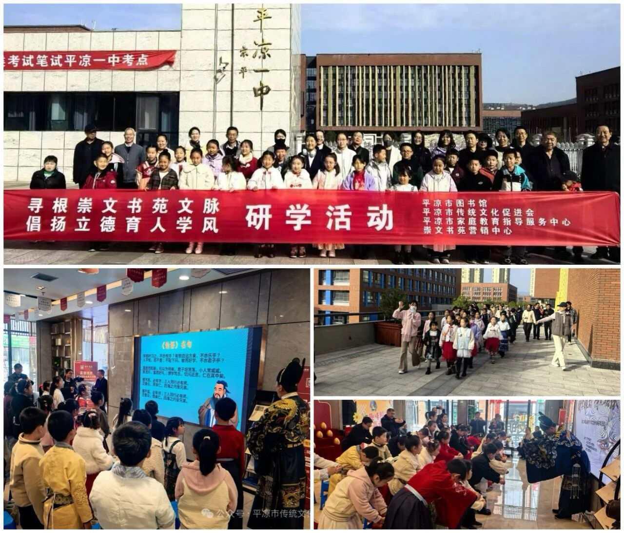 11月8日,房產(chǎn)公司聯(lián)合市圖書(shū)館、市傳統(tǒng)文化促進(jìn)會(huì)、市家庭教育指導(dǎo)服務(wù)中心,成功舉辦“尋根崇文書(shū)苑文脈,倡揚(yáng)立德育人學(xué)風(fēng)”主題研學(xué)活動(dòng)。20多個(gè)家庭受邀走進(jìn)百年名校平?jīng)鲆恢校两礁惺軅鹘y(tǒng)文化的深厚魅力。