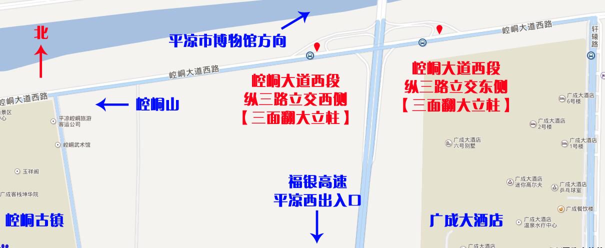 1 | 崆峒大道西段、縱三路立交東側(cè) | 三面翻立柱 (高炮) | 1座(9面) |
