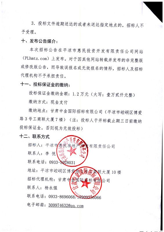 2.投標(biāo)文件遞交地點為:平?jīng)鍪谢菝穹康禺a(chǎn)開發(fā)有限責(zé)任公司會議室(平?jīng)鍪嗅轻紖^(qū)博愛路3號工商聯(lián)大廈11樓)。