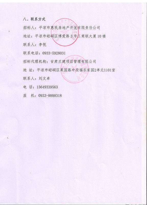 2.投標(biāo)文件遞交地點(diǎn)為:平?jīng)鍪谢菝穹康禺a(chǎn)開發(fā)有限責(zé)任公司會議室(平?jīng)鍪嗅轻紖^(qū)博愛路3號工商聯(lián)大廈11樓)。