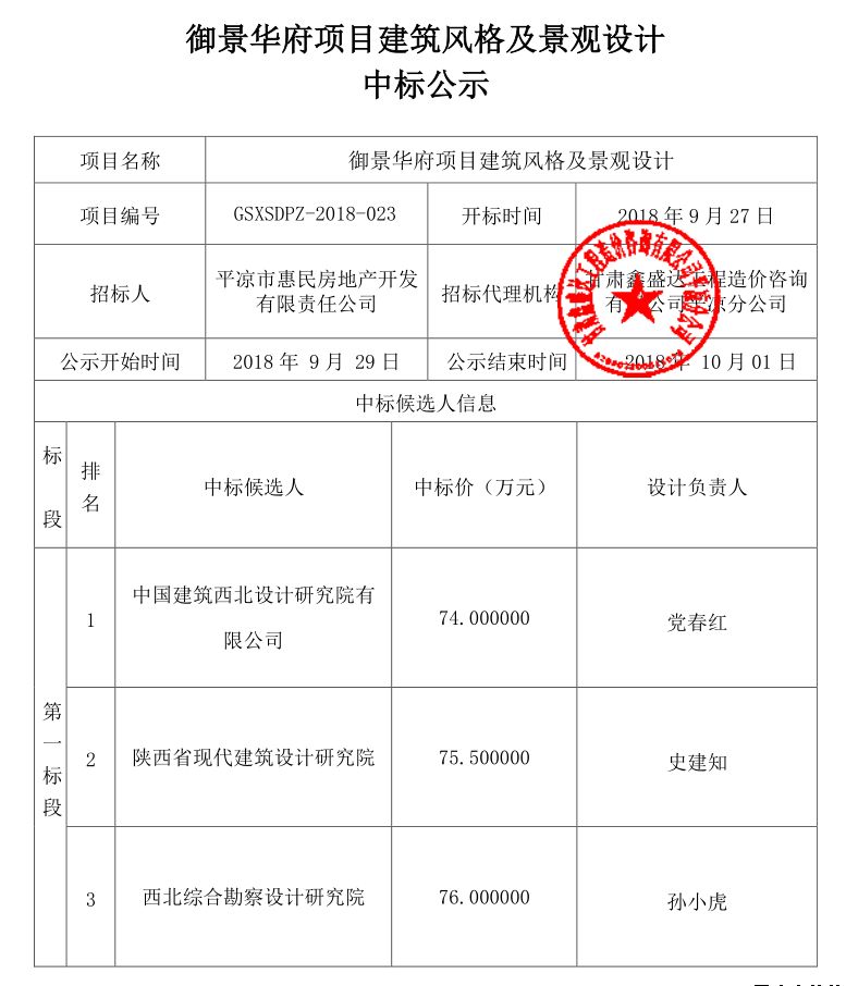 御景華府項(xiàng)目建筑風(fēng)格及景觀設(shè)計中標(biāo)公示