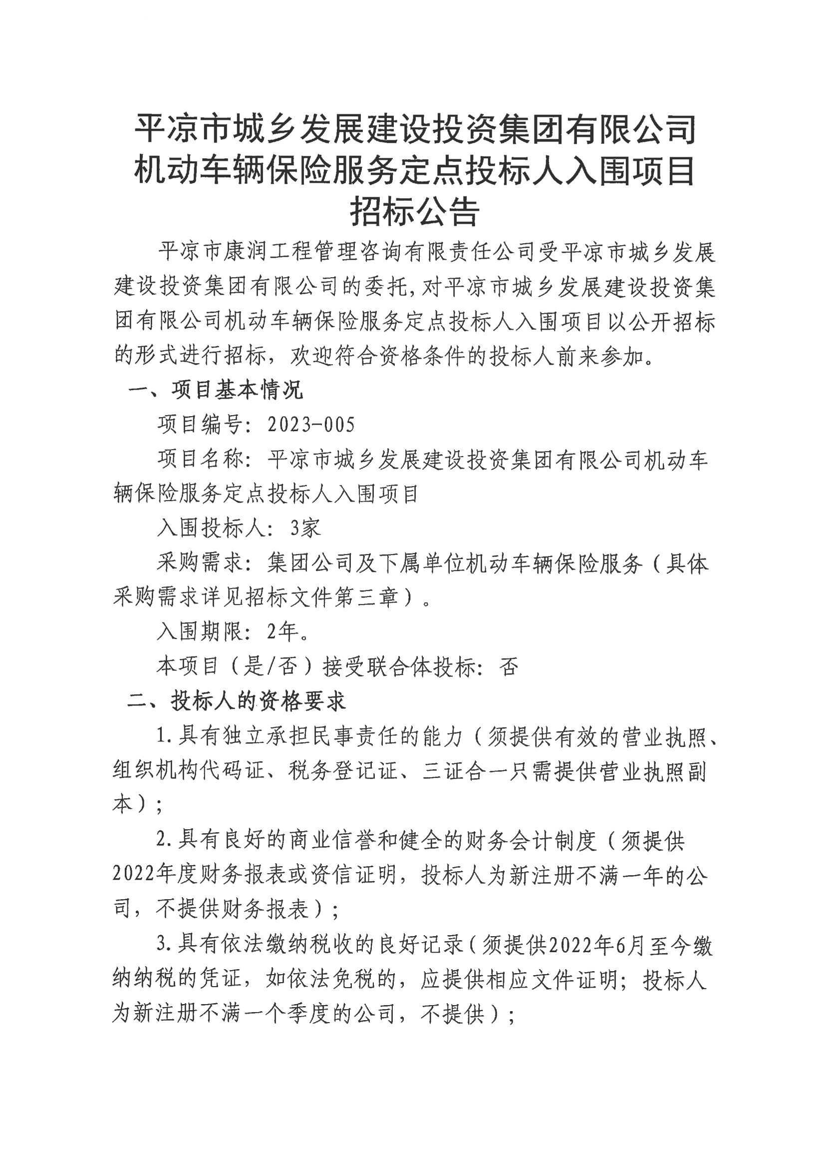 機動車輛保險服務(wù)定點投標人入圍項目招標公告
